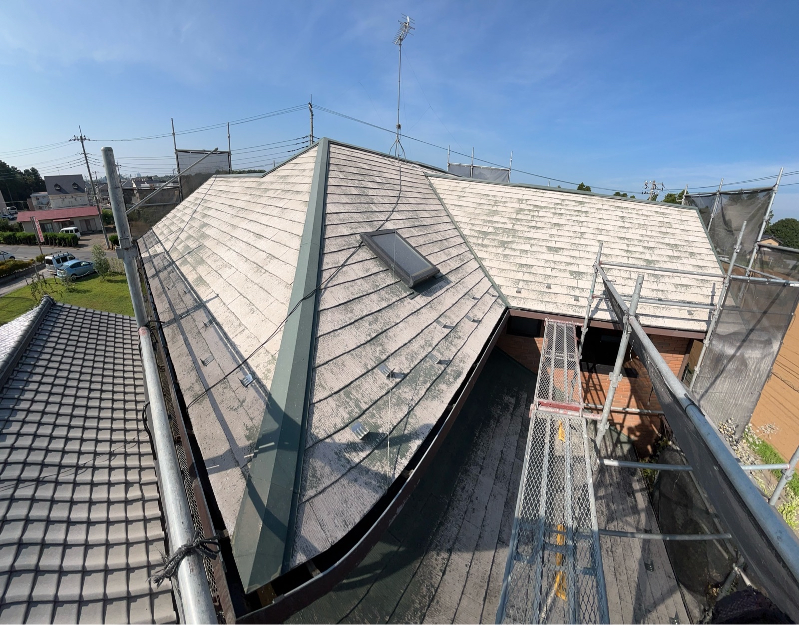 本症例では、既存屋根の劣化および防水性能の低下が確認されたため、屋根洗浄後に屋根カバー工法による施工を実施しました。
