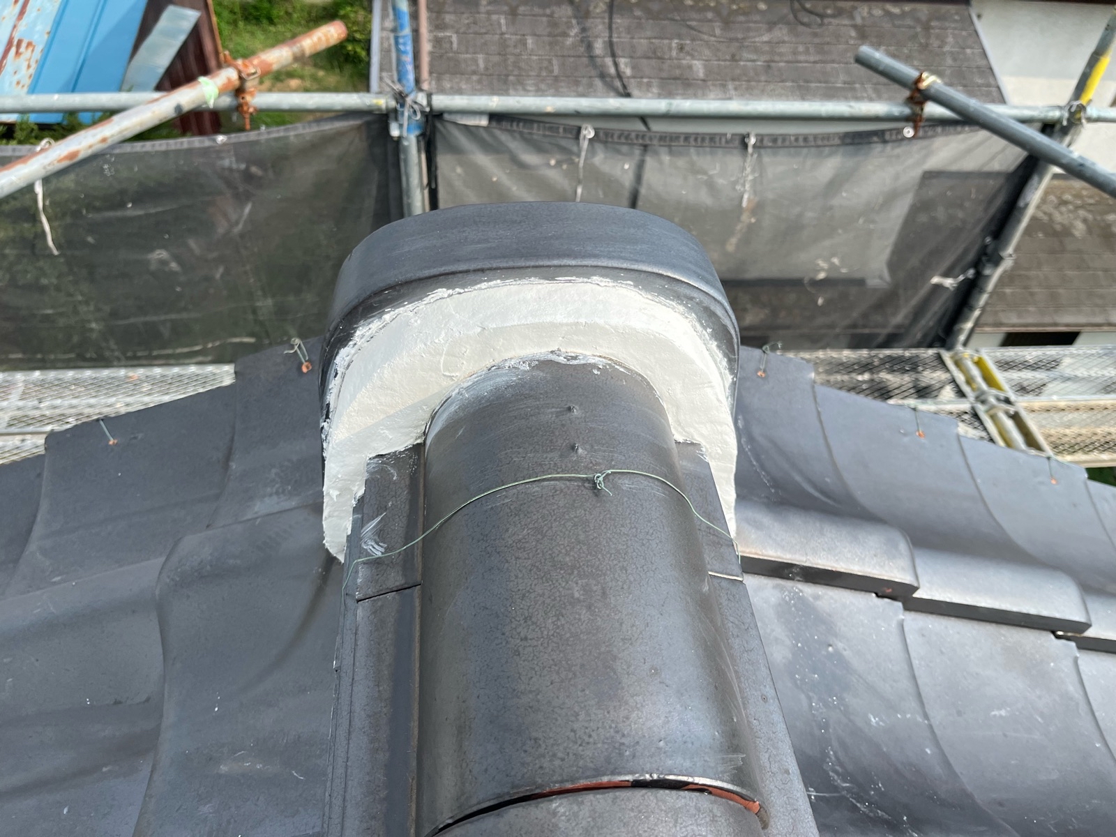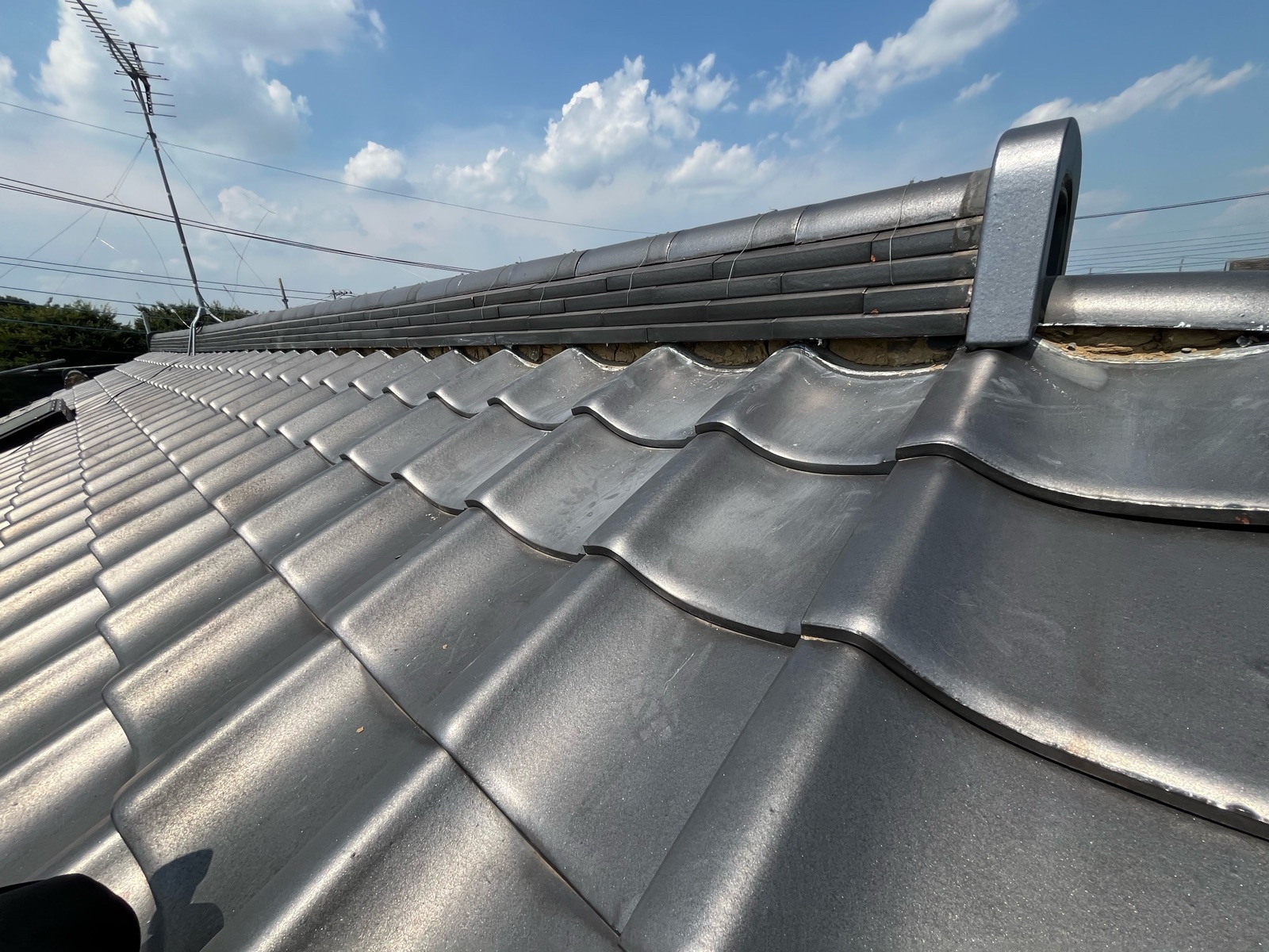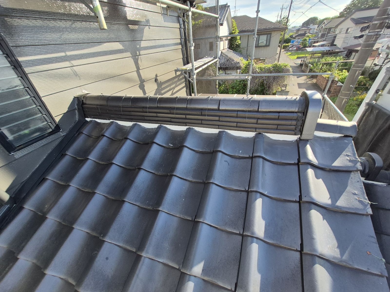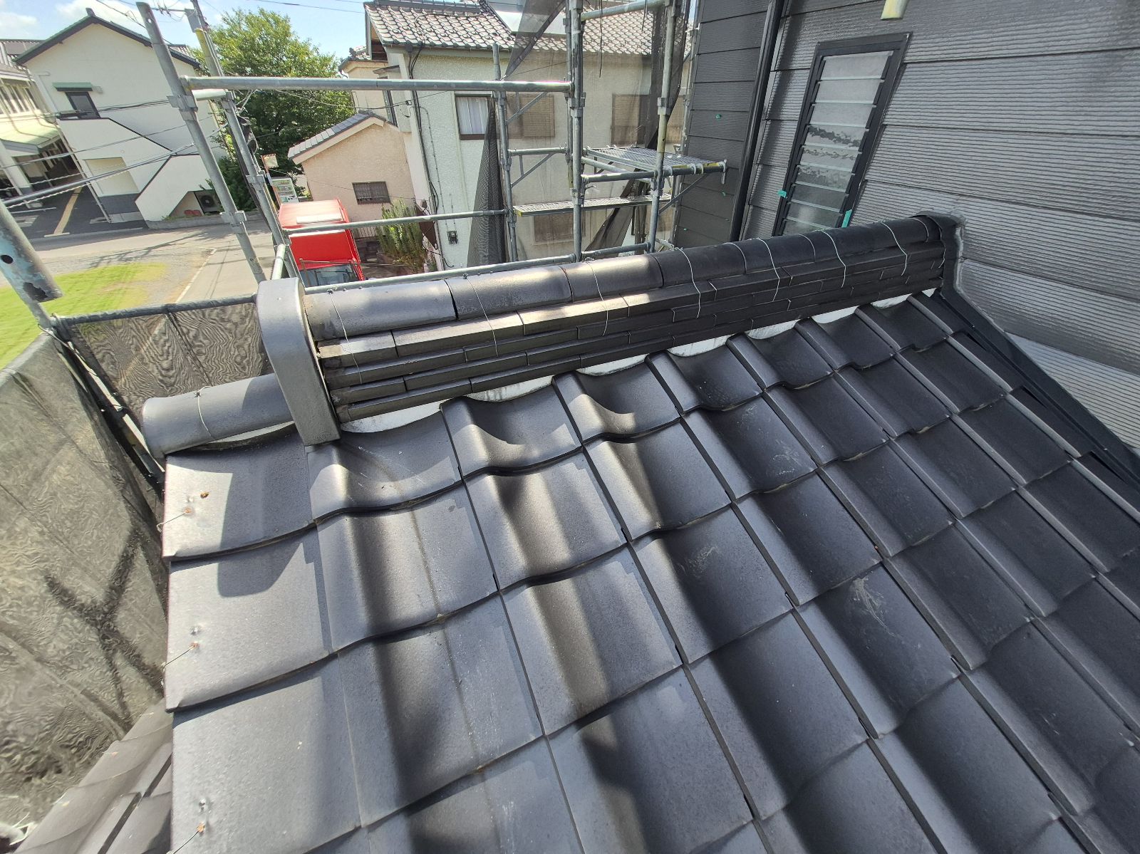 棟瓦のラインがきれいに整い、しっかりと固定されました。