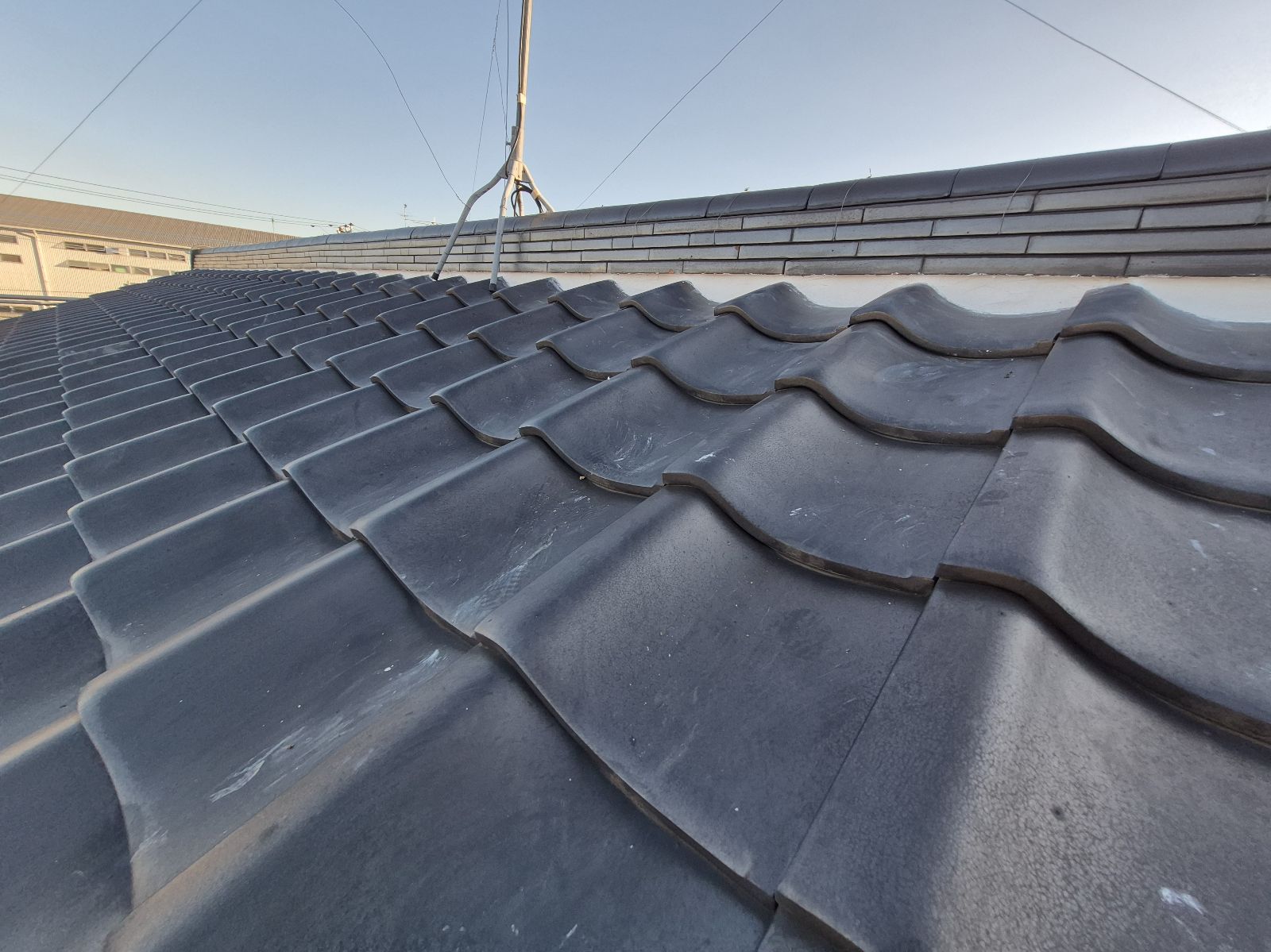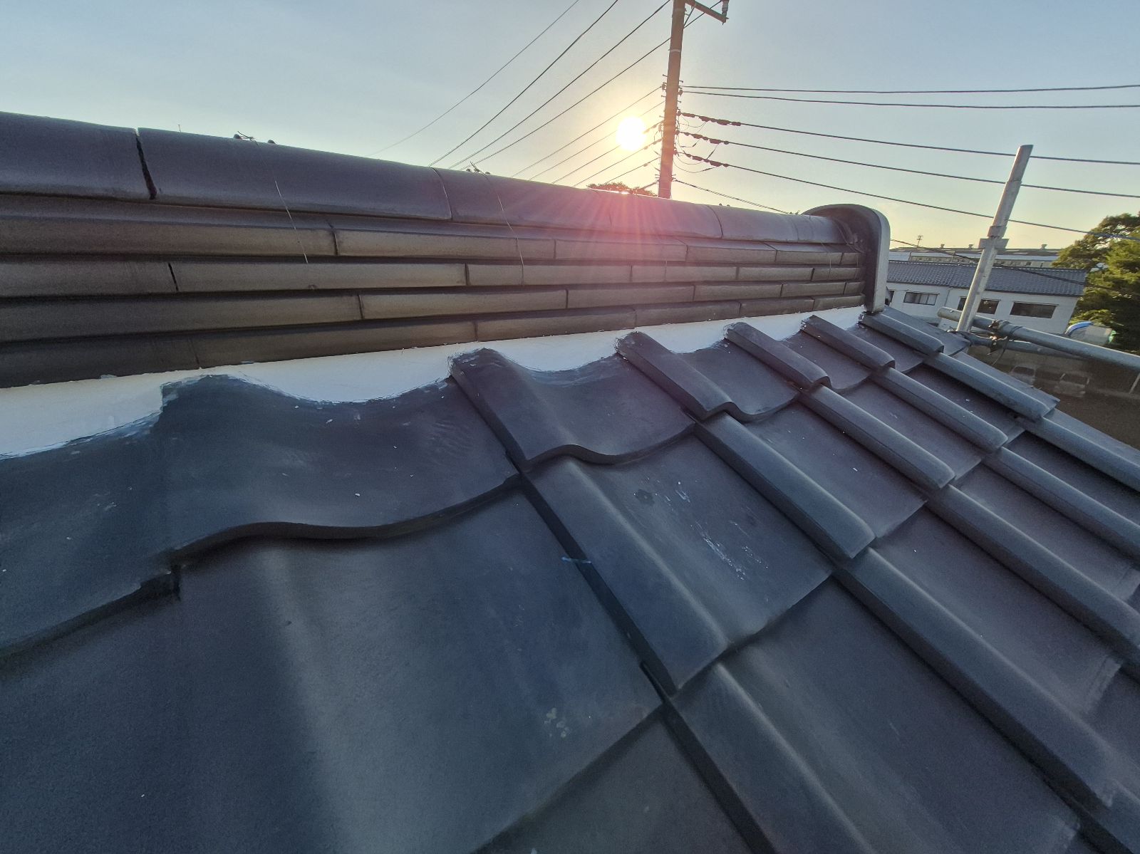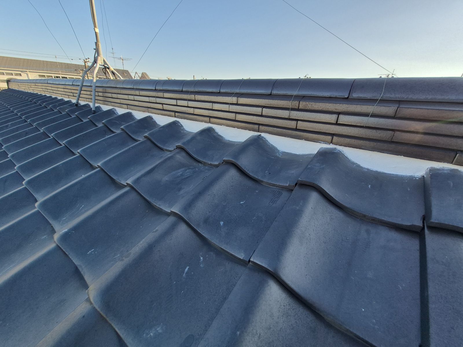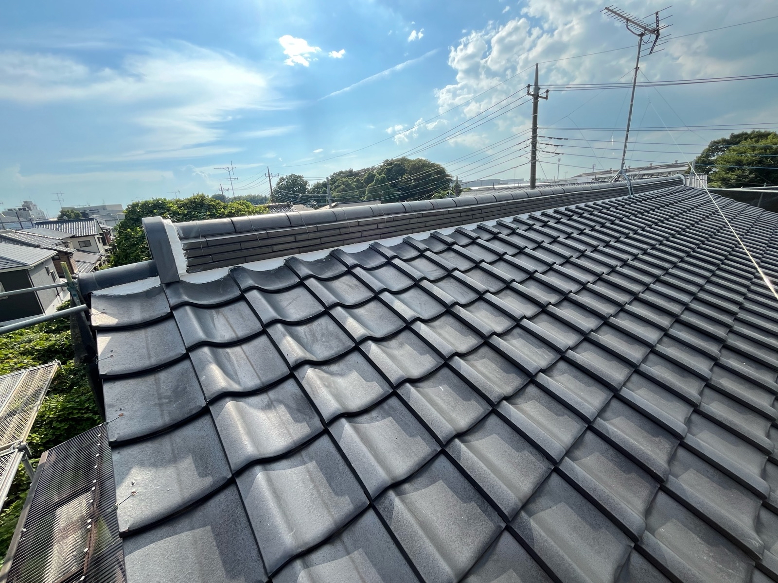 棟瓦のラインがきれいに整い、しっかりと固定されました。