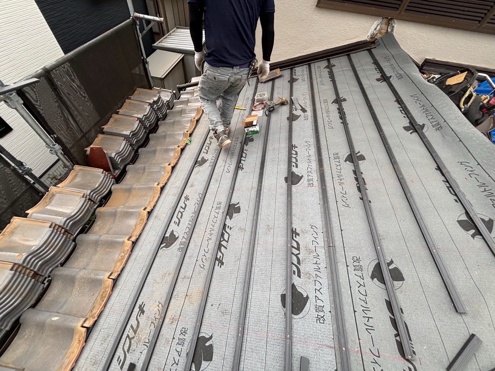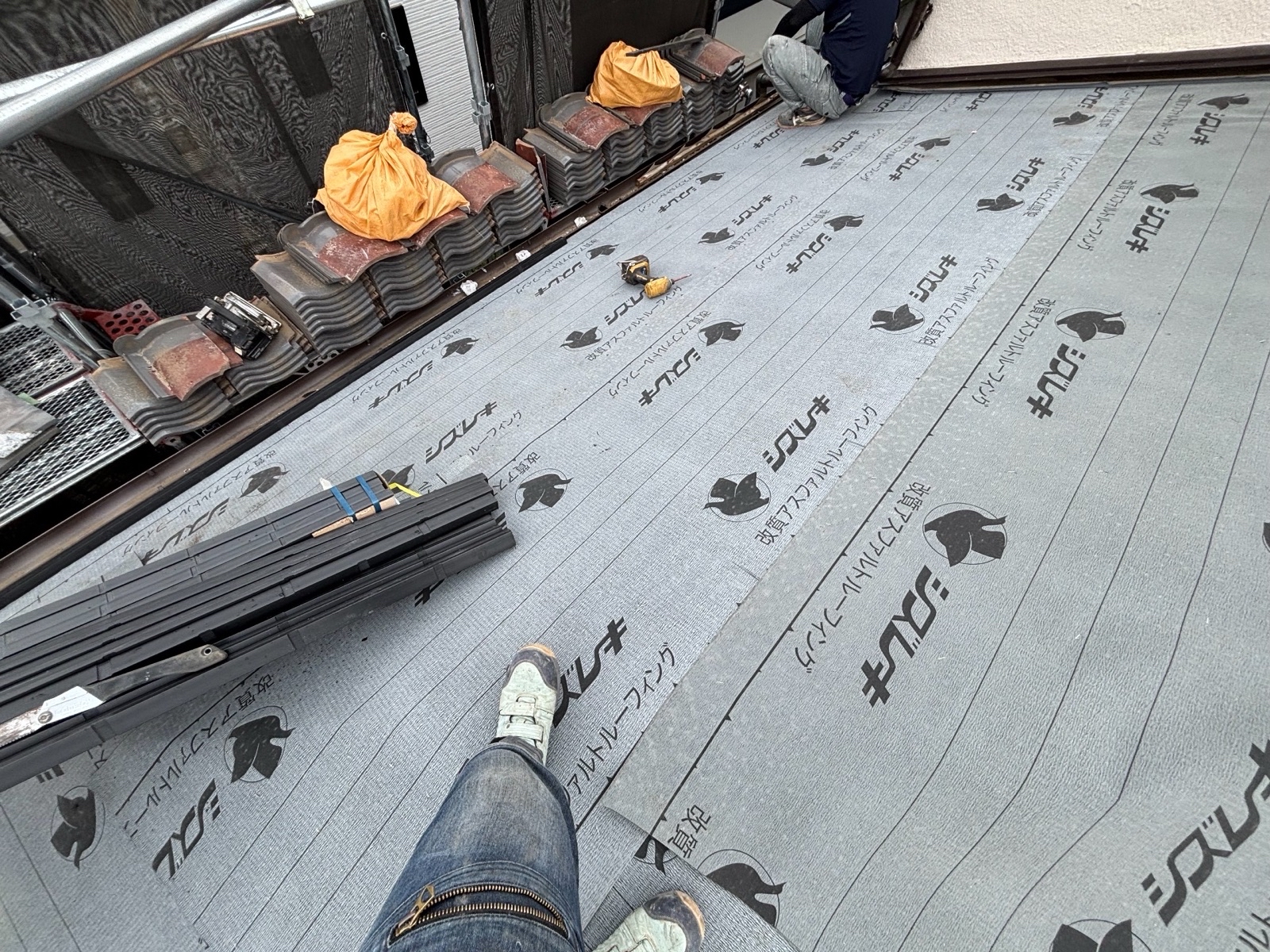 その上に新しいルーフィング(防水シート)を施工して防水性を強化しました。