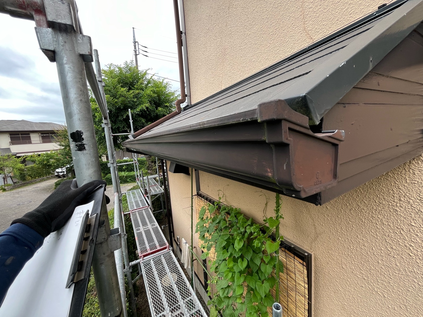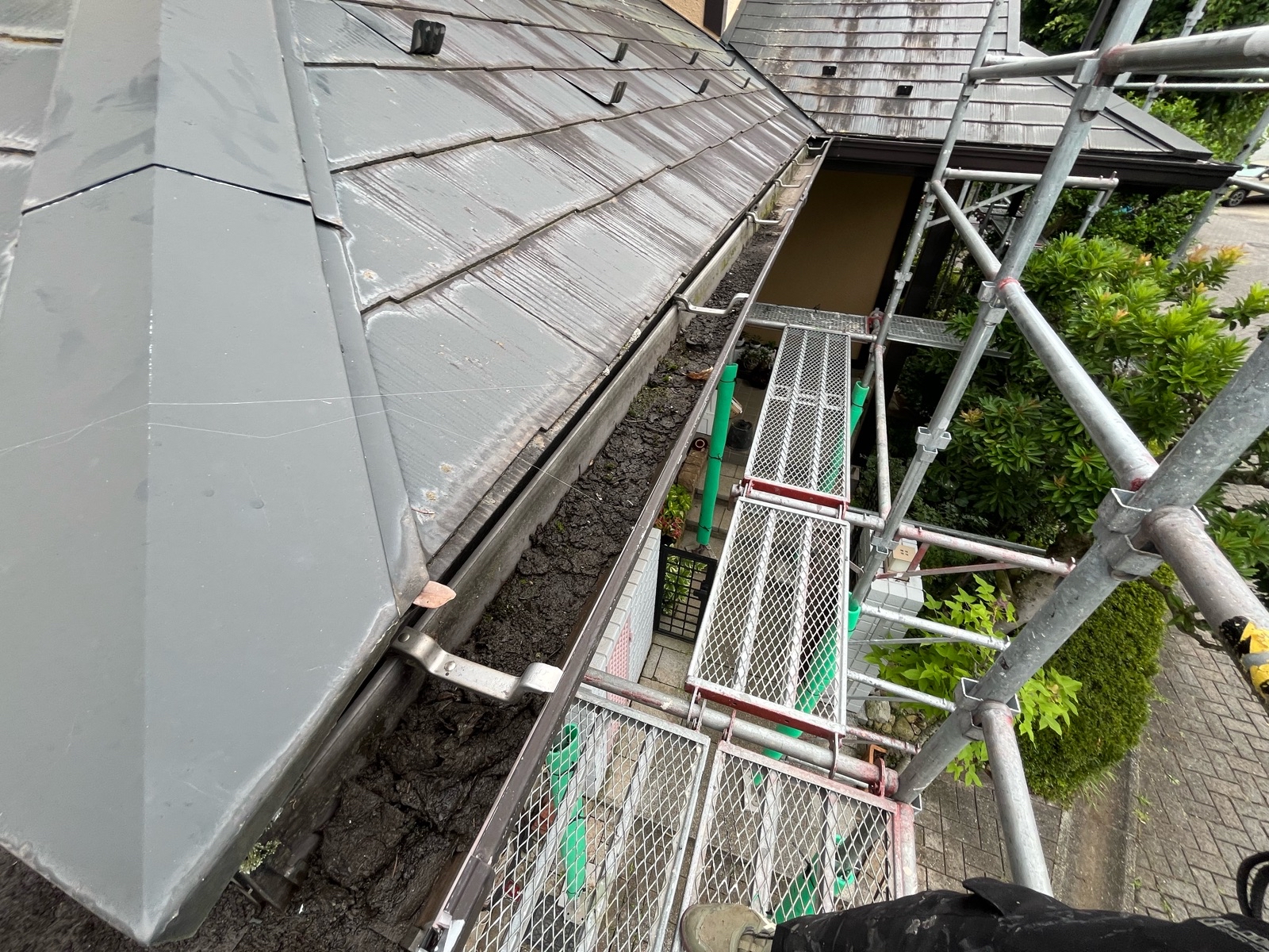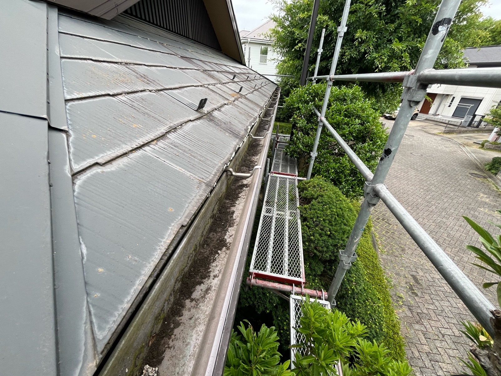 症例紹介 ホーム症例紹介茨城県つくば市 雨樋交換工事 2025/11/21茨城県つくば市 雨樋交換工事雨樋詰まり歪み施工箇所:雨樋症状:詰まり、歪み施工方法:雨樋交換工事金額:000000担当者の説明施工場所:茨城県つくば市 施工内容:雨樋交換工事 今回のお住まいでは、長年の落ち葉や土、苔が雨樋内部に厚く堆積し、排水がほとんどできないほど重度の詰まりが発生していました。雨が降るたびに雨水が溢れ出し、外壁を伝って流れ落ちることで、外壁の汚れや劣化、さらには軒天や基礎部分への水の回り込みといった二次被害が懸念される危険な状態でした。このまま放置すると、家全体の寿命に影響を与える可能性があるため、早急な対処が必要でした。 ✅今回実施した工事 ・既存雨樋の撤去 ・内部に詰まった土・落ち葉などの除去 ・雨樋全体の新規交換 ・水が流れやすいように勾配を丁寧に調整 ・交換後の通水チェックと最終確認 工事後は雨水の流れがスムーズに改善され、雨が降っても溢れや逆流が起きない正常な状態を取り戻しました。外壁や軒天への被害リスクも解消され、お家全体の耐久性が守られる安心感のある仕上がりに生まれ変わりました。今回のように、雨樋のつまりは放置すると大きなトラブルにつながるため、早めの点検と交換がとても大切だと実感いただける施工となりました。 建幸番長では、屋根の点検やお見積り、屋根工事に関するご質問を無料で承っております。 お気軽にご相談ください! ⇒無料のお問い合わせはこちらから! 症例紹介一覧へ戻る PAGE TOP